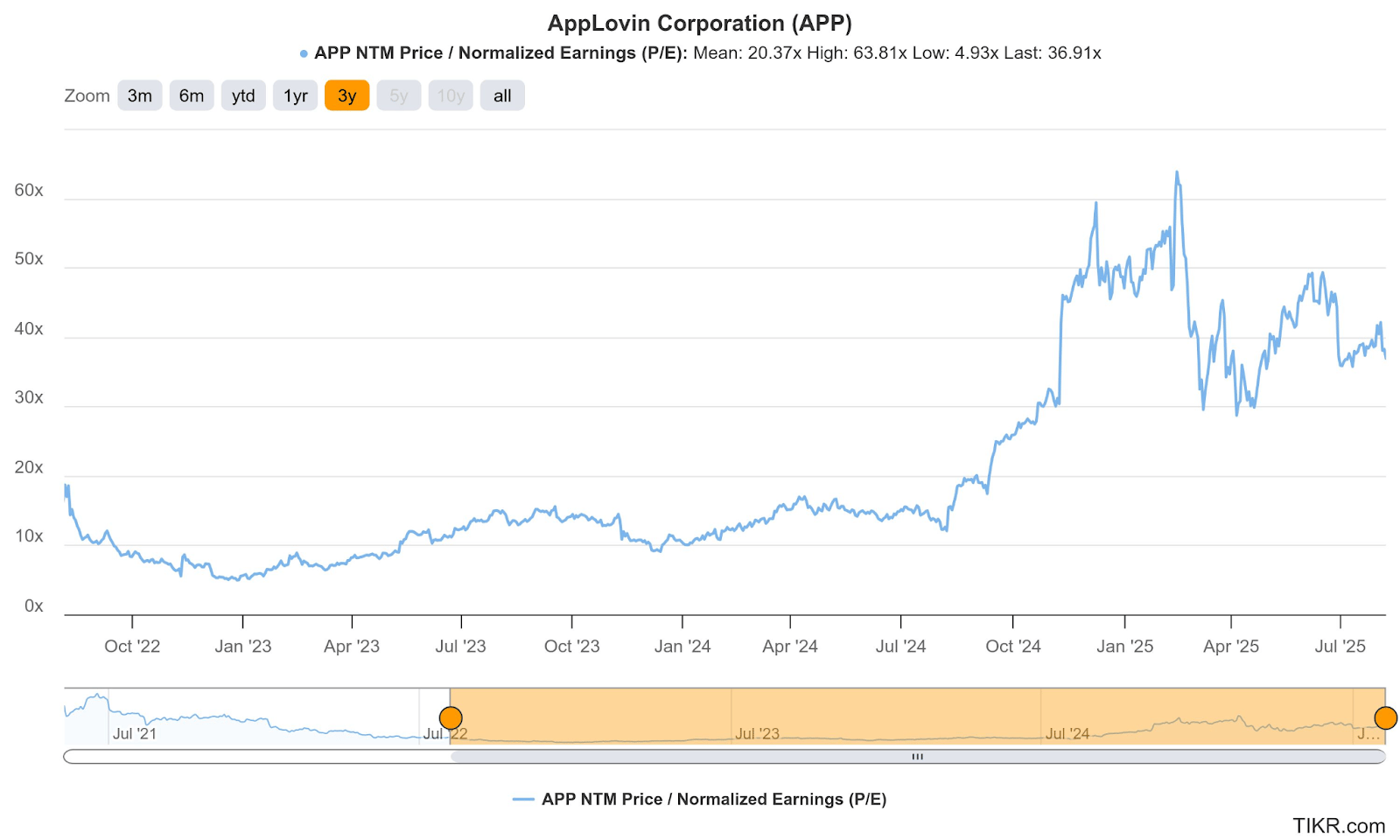 App trades for 37x forward EPS. EPS is expected to grow by 94% this year and by 42% next year.