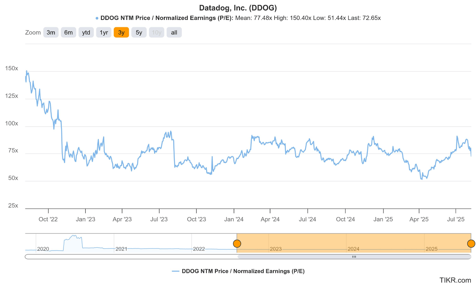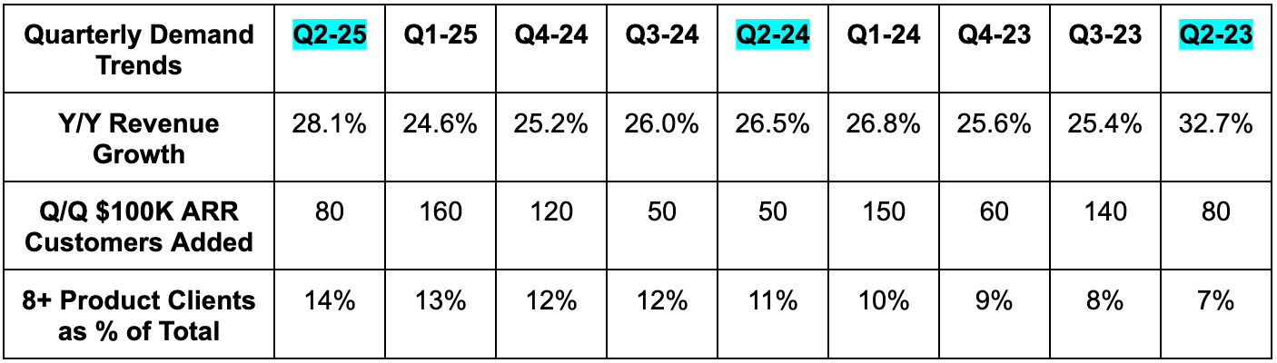 DDOG trades for 73x forward EPS. EPS is expected to grow by 2% this year, before resuming 23% compounding over the next two years. It also trades for 50x forward FCF. FCF is expected to grow by 7% this year before compounding at a 28% clip over the next two years. They’re in investment mode for 2025.
