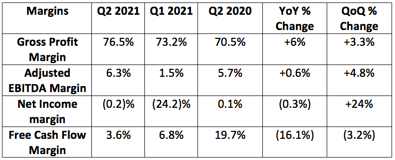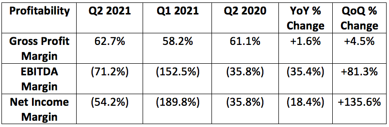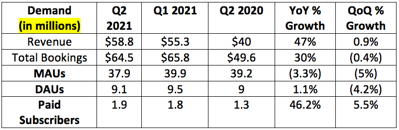 Duolingo was among the largest beneficiaries of the Covid-19 outbreak and this quarter represented its toughest year over year comp ever. The company specifically called this out in its S1, so to see revenue growth remain at a lofty 47% rate is encouraging. The next few quarters will also come with difficult comps before we lap the pandemic lockdowns.