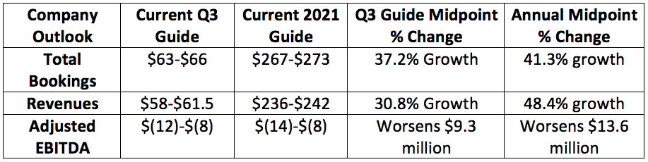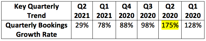 The company’s 2nd quarter bookings are generally similar to 1st quarter bookings. Last year, the company saw 35% sequential growth from Q1 2020 to Q2 2020 as a result of the pandemic. This made the Q2 2021 year over year comparison quite difficult. When adjusting for this impact growth rates accelerated in the quarter across the board.