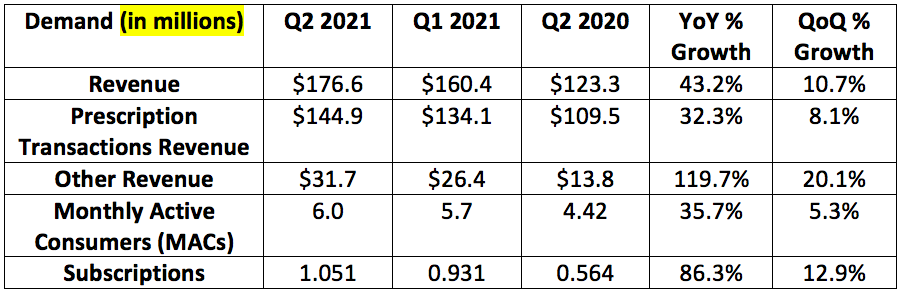 GoodRx broke out subscription revenue from its other revenue segment for the first time this quarter. I added these 2 revenue lines together to make the comparison apples to apples.