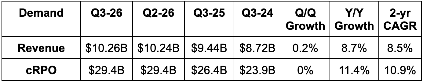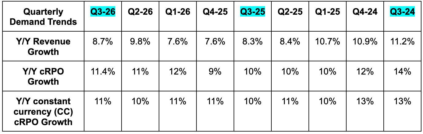 - 11% CC cRPO growth beat 9% growth guidance.