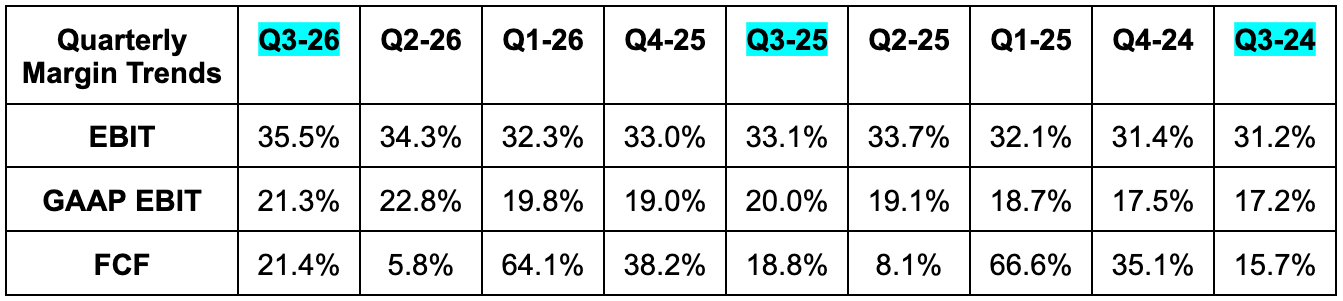 - Raised Q4 EBIT guidance by 4.5%, meeting estimates.