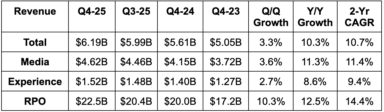 - Beat digital media ARR estimates by $5M or 0.3%. Beat RPO estimates by 0.9%.