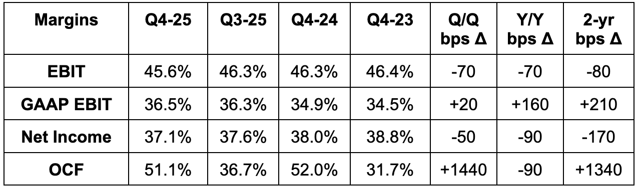 - 10.7% 2-yr revenue CAGR vs. 10.7% Q/Q & 10.4% 2 Qs ago.