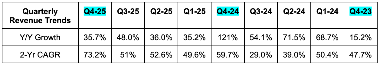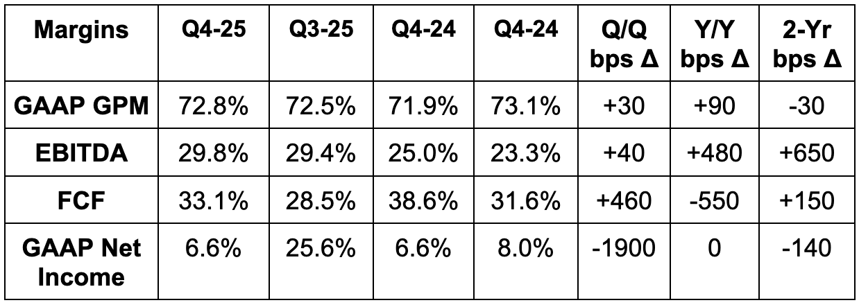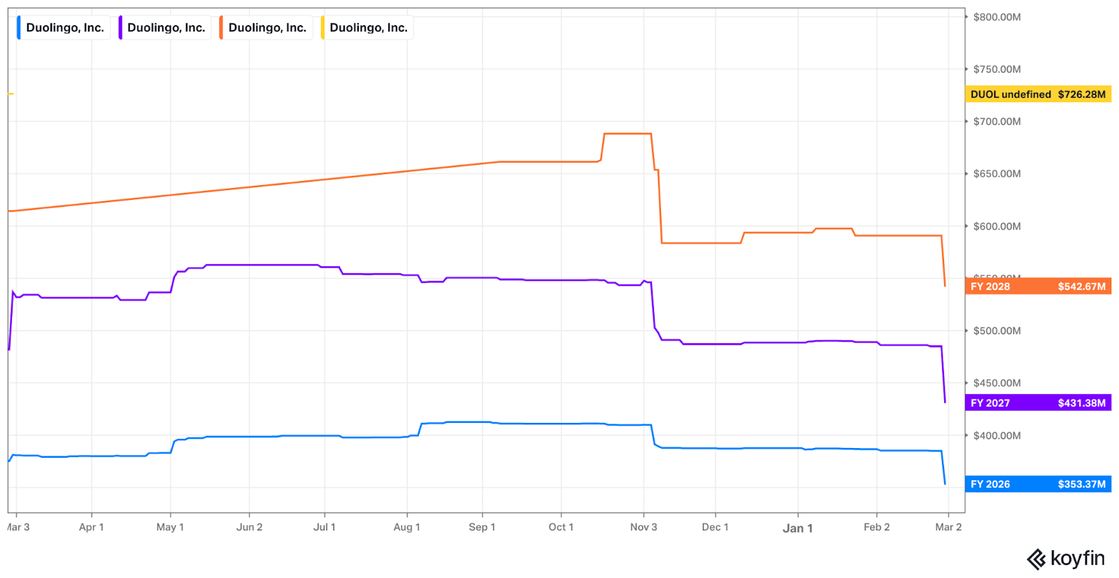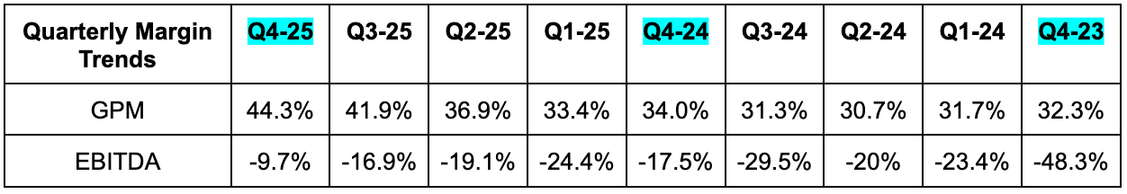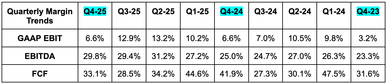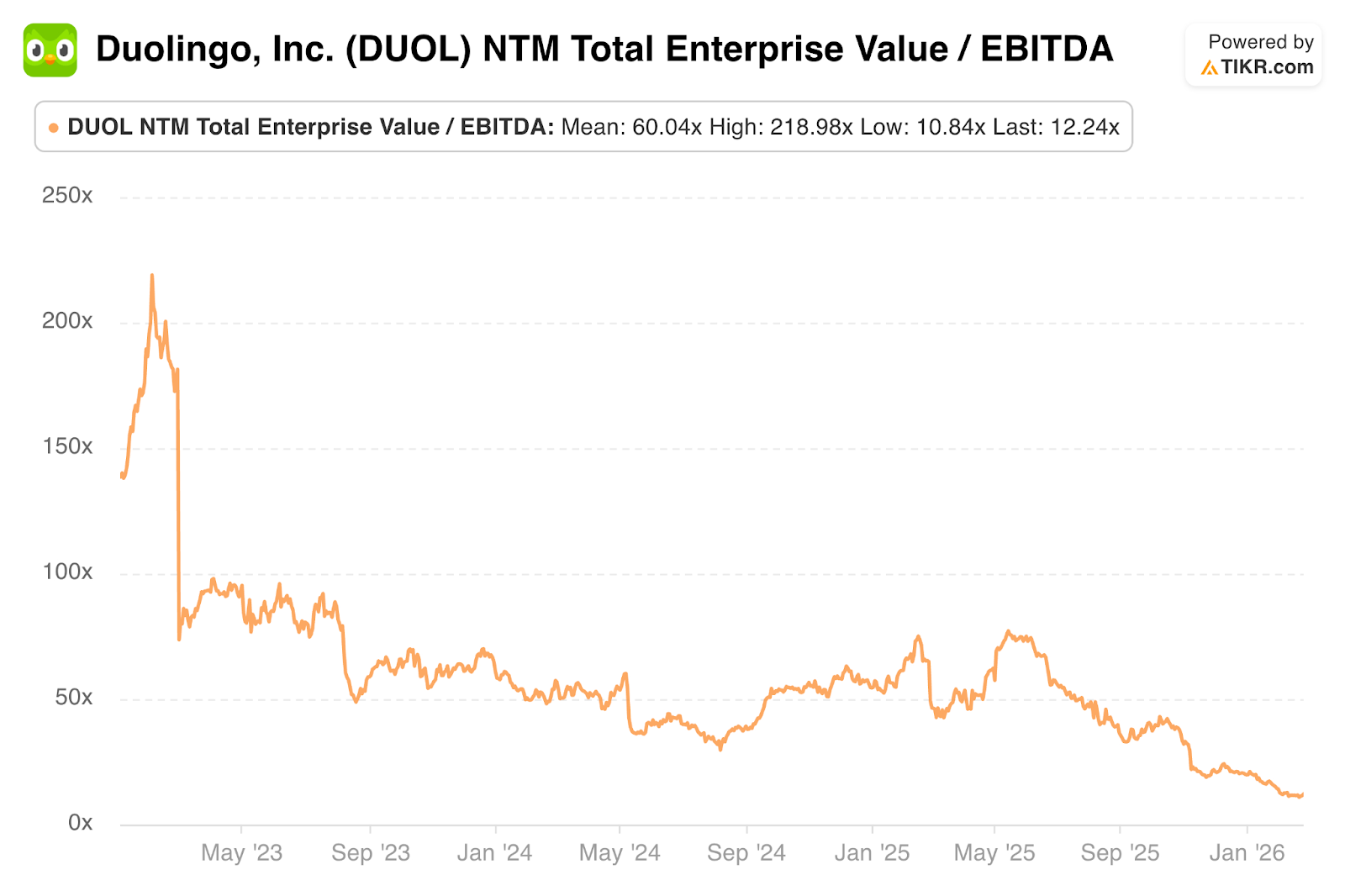 Estimates are going to keep falling over the coming days, so it’s best to use DUOL’s actual guidance right now to gauge forward multiples. Based on that guidance, it trades for 15x forward EBITDA with EBITDA expected to modestly fall Y/Y in 2026.