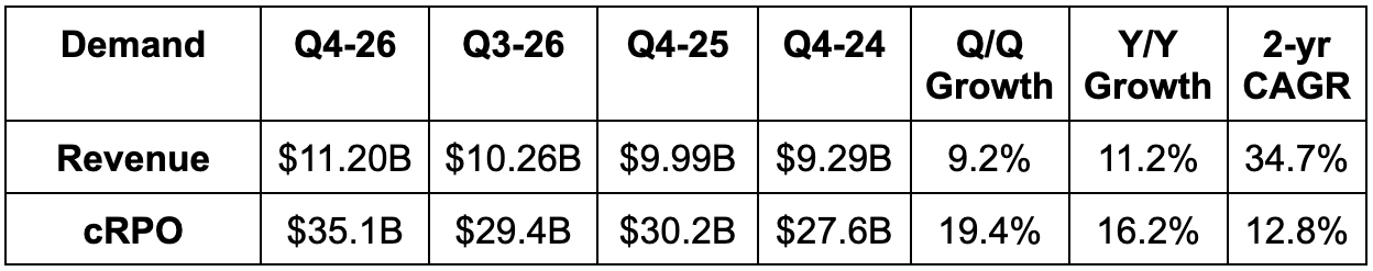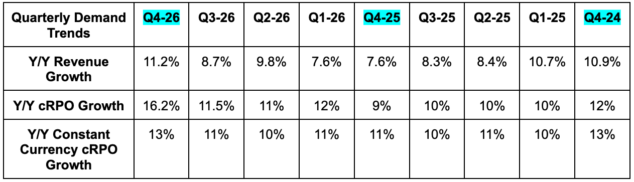 - Beat current remaining performance obligation (cRPO) estimates by 2% (RPO was 1.5% ahead).
