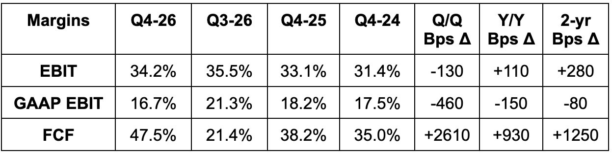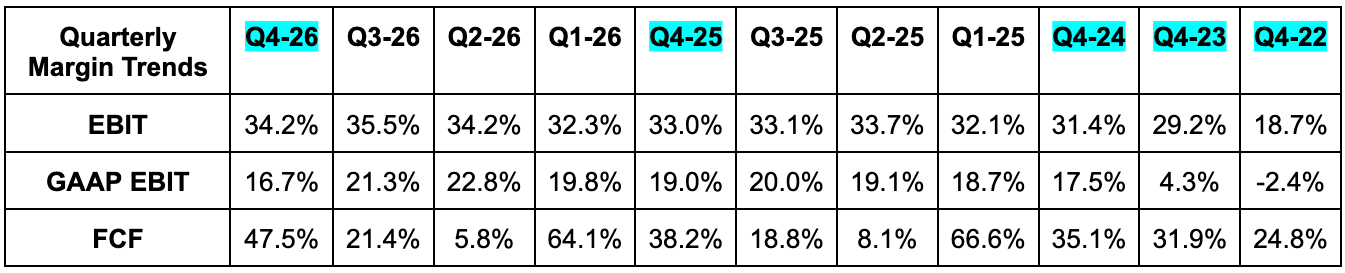 - Beat -$58.5M GAAP EBIT guidance by $7.5M.
