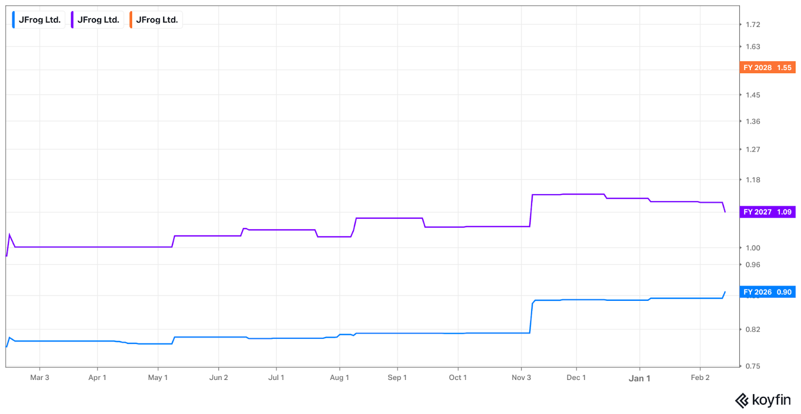 FROG trades for about 58x 2026 EPS once estimates update. EPS is expected to grow by 10% this year and by 21% next year. It also trades for 45x FCF. FCF is expected to be roughly flat this year and grow by 30% in 2027.