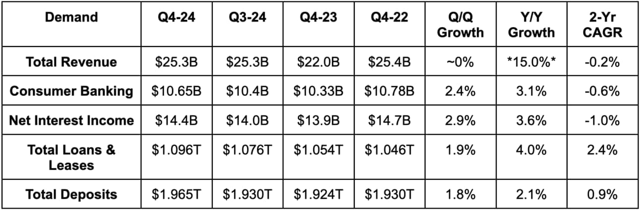 - Bank of America expects $14.55B in Q1 net interest income, with that ramping to $15.6B by the end of the year. Growth is expected to accelerate throughout the year.