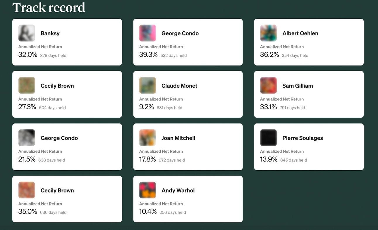 *“Net Return" refers to the annualized internal rate of return net of all fees and costs, calculated from the offering closing date to the date the sale is consummated. IRR may not be indicative of Masterworks paintings not yet sold and past performance is not indicative of future results. See important Regulation A disclosures.