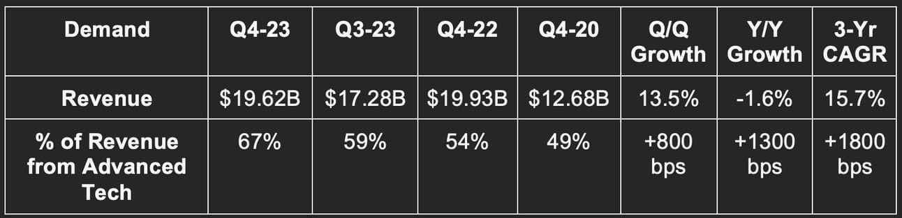- “Advanced Technology” Revenue = revenue from 3nm, 5nm & 7nm technology.