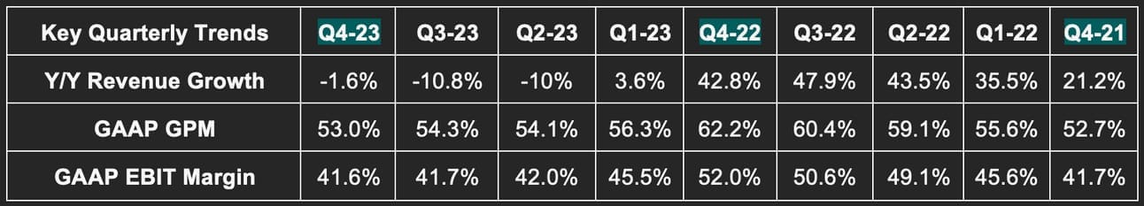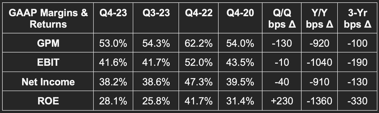 - Beat 41% GAAP EBIT margin estimates by 60 bps & beat its guidance by 80 bps.