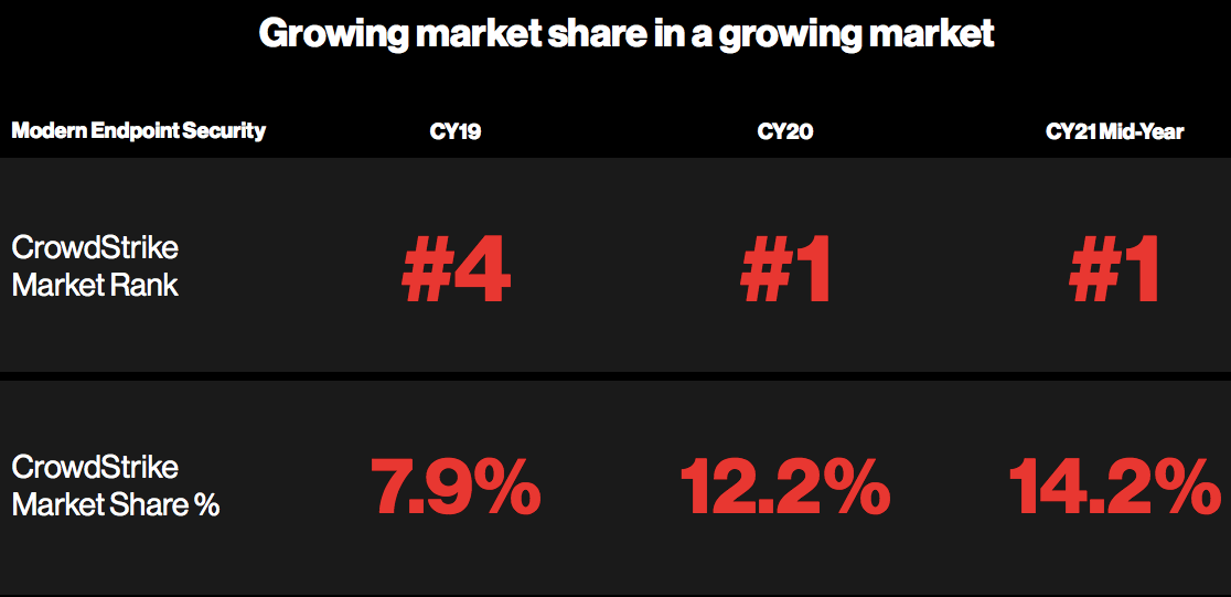 BMO Capital Markets initiated CrowdStrike at overweight. The news isn’t as interesting as the reasoning: The firm sees CrowdStrike effectively competing with Microsoft for endpoint market share. Considering CrowdStrike’s market share has nearly doubled over the last few years to overtake Microsoft as top dog in the space, this isn’t surprising, but is still nice to hear.