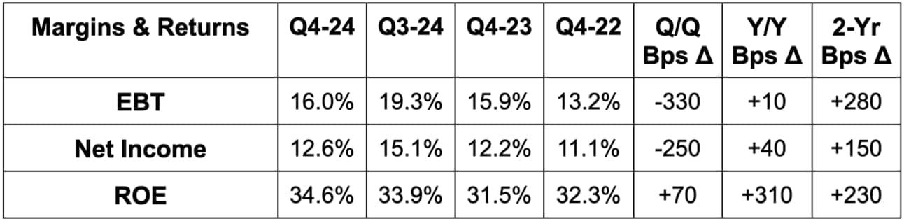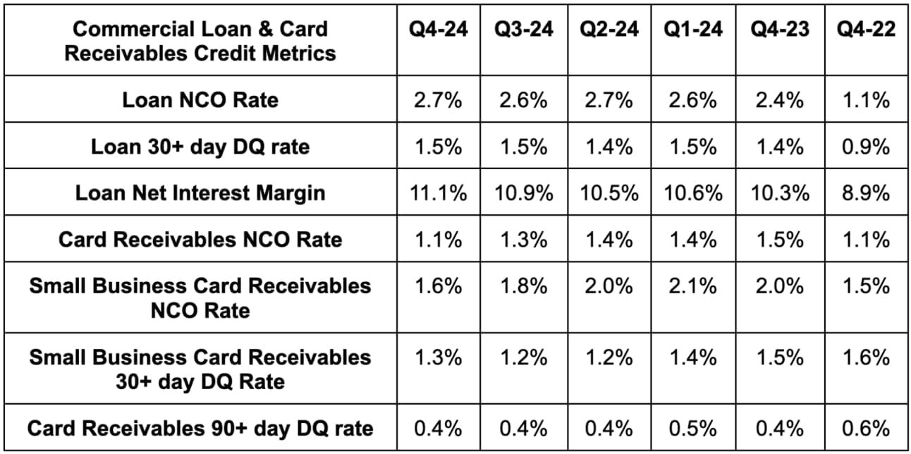 Credit thankfully looks as good as you would expect for a company that caters to highly affluent individuals like this one. It’s good to see both DQ and NCO rates for the company well below 2019 levels and good to hear their brightening point of view towards consumer and economic health entering 2025.