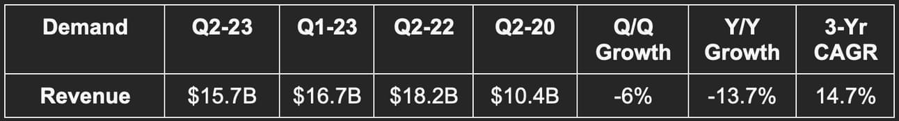 It sees overall revenue for 2023 falling 10% Y/Y vs. expectations of -5.4% revenue growth. Looking ahead, it is on track to compound revenue between 15%-20% over the “next several years.” This was a reiteration of its 2022 investor conference guidance.