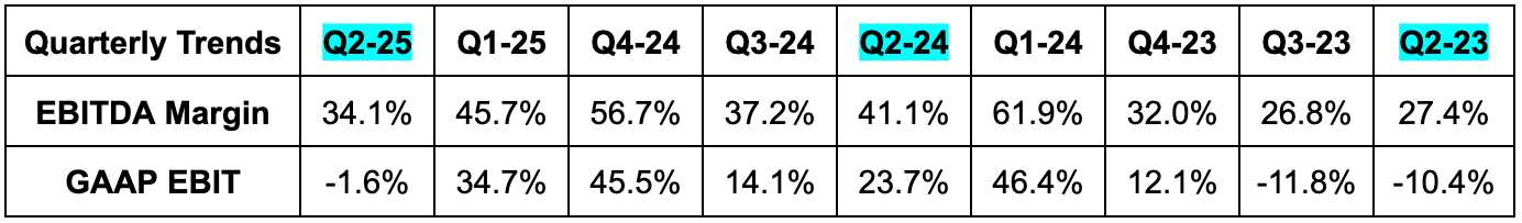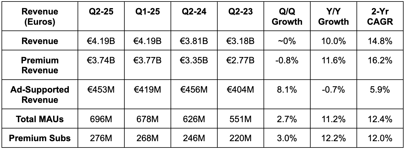 Part one of the Cloudflare and Spotify reviews are included as snapshots in section one of this piece. Cloudflare looks mostly good (aside from gross margin weakness), but with a sky-high valuation, it’s easy to see why shares weren’t more sharply rewarded. Especially with the flood of noisy headlines we got on Friday. Spotify looks pretty underwhelming at first glance. Revenue underperformance was foreign exchange driven, so not something to worry about. EBIT underperformance was amplified by higher-than-expected payroll tax from its rising share price, but even without this hit, it still would have missed its own guidance by 6.5%. After a string of such fantastic quarters from them, it was surprising to see this. Still, I should finish reading everything before I comment more. I plan to publish full reviews of Cloudflare and Spotify whenever I can find time this earnings season. With 10 reviews coming next week and several more snapshots, that will not happen until mid-to-late August.