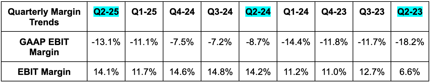 - A litigation provision drove the difference between GAAP & non-GAAP margins this quarter and last quarter.