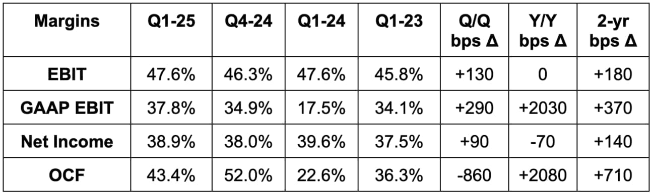 - Beat EBIT estimates by 2.2%; beat GAAP EBIT estimates by 4.8%.