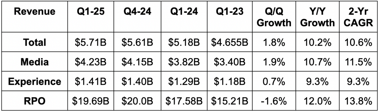 - Beat digital experience revenue estimates by 0.7% & beat guidance by 1.4%.