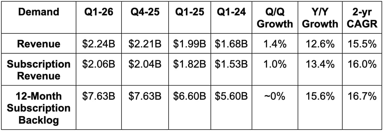 - Beat 12-month subscription backlog estimate by 0.5%.