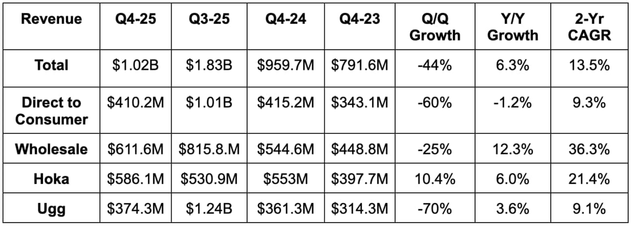 - Deckers refrained from providing full-year guidance like it normally does. It cited uncertain macro as the reason.