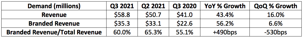 “We expect gross margin to expand in the fourth quarter and throughout 2022 as we increase branded volume and production capacity.”