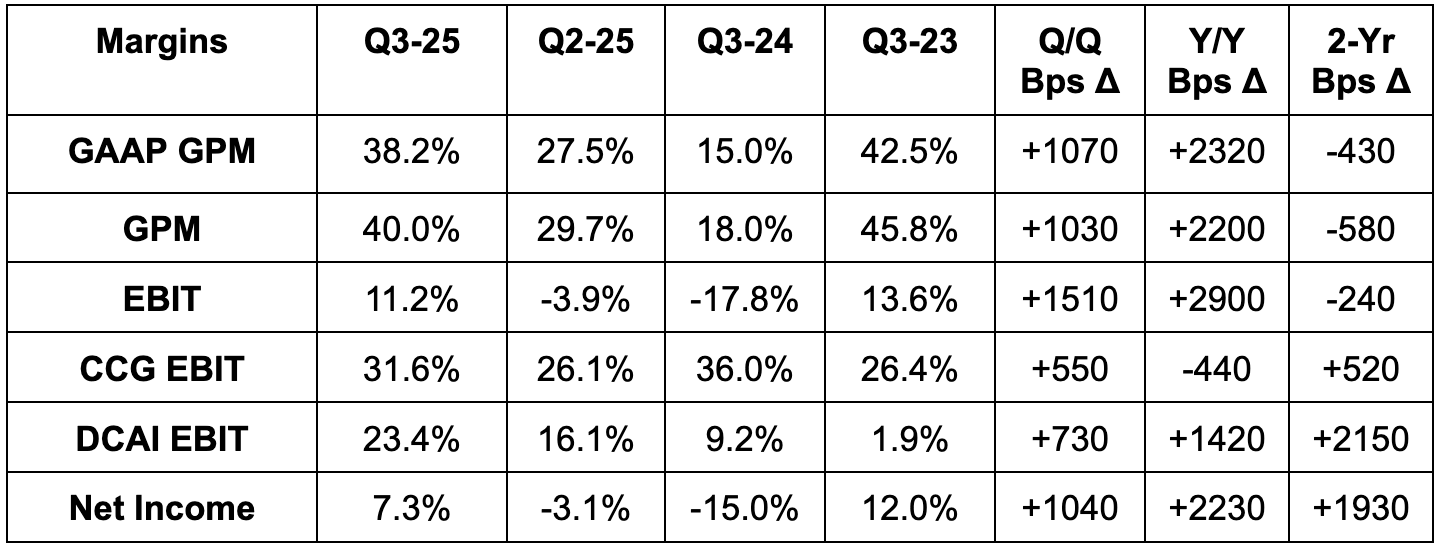 - Beat Data Center & AI (DCAI) revenue estimate by 3.8%.
