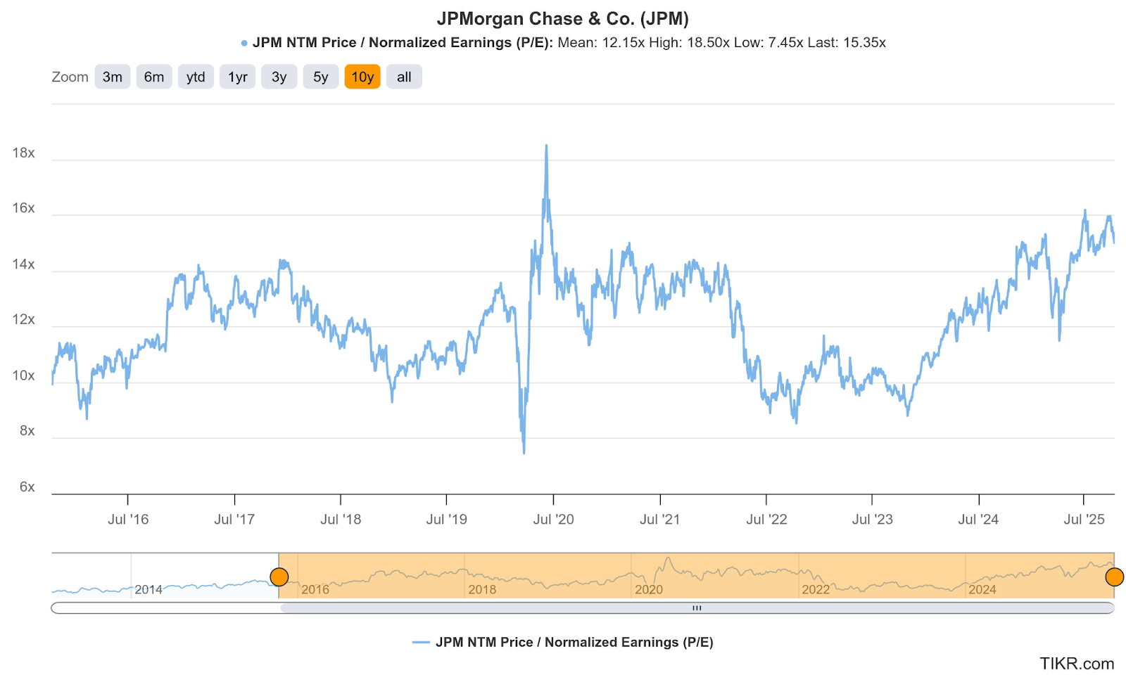 The firm slightly raised annual net interest income and net interest income ex-markets guidance for the year. Improved card service net charge-off rate expectations from 3.6% to 3.3% for the year. JPM trades for 15x forward EPS. EPS is expected to slightly fall this year, and compound at a 6% clip over the following two years.