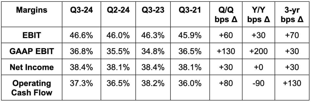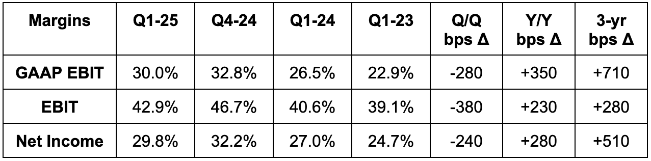 - Share count fell 2.4% Y/Y.