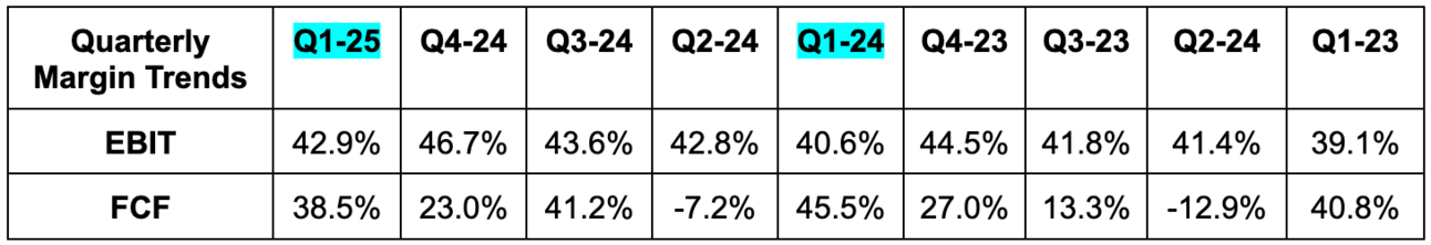 Oracle did get a bit of help on operating expenses from extending the useful life of some servers from 5 years to 6 years. This is it trying to milk utility from general compute infrastructure and avoid spending more there as it embraces the high performance compute boom. We’ve seen many, many other companies do the same… Meta, Amazon, Alphabet, Zscaler, Cloudflare etc. Nothing shady here, although EBIT would have been a small miss without this help.