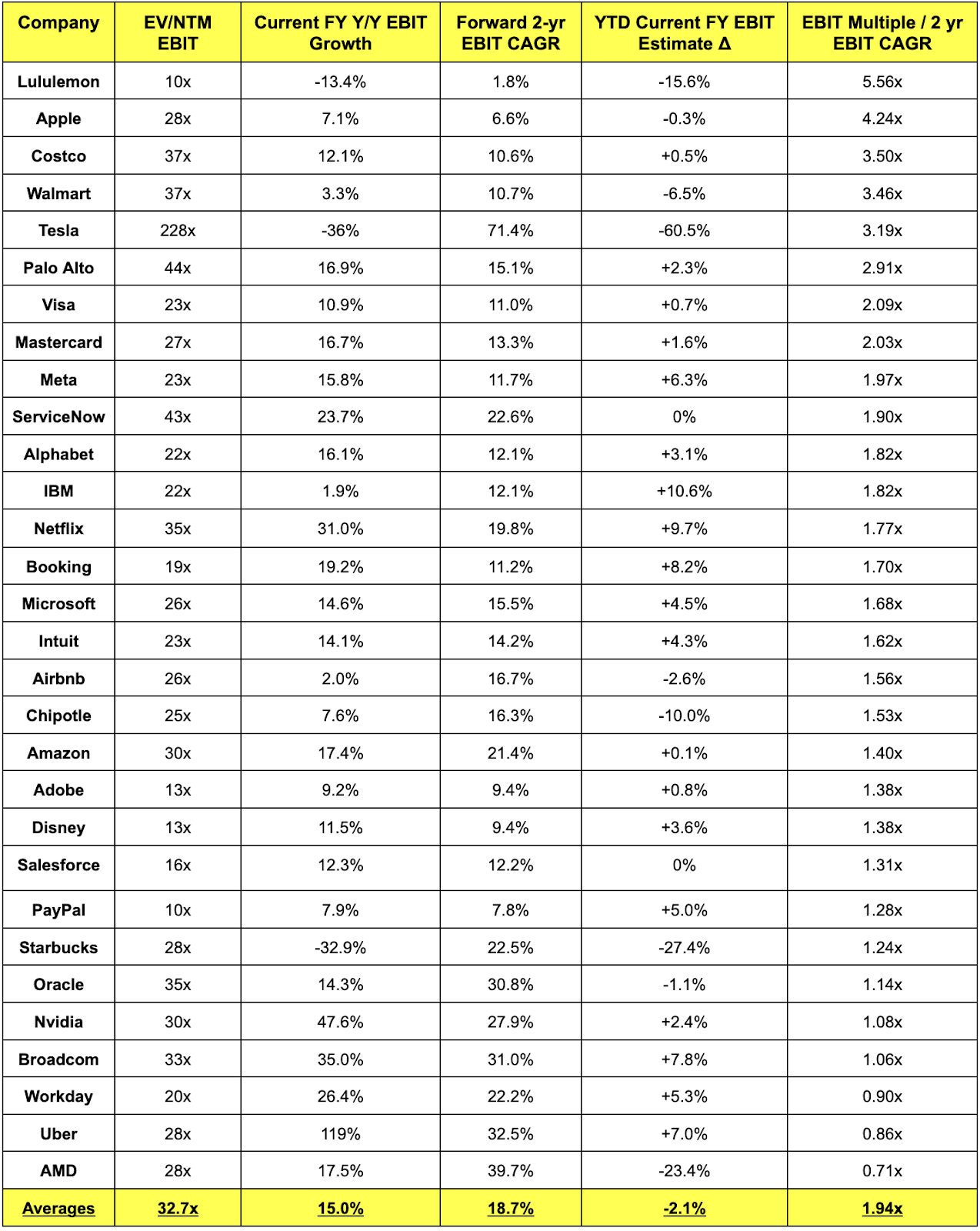 - 2-year EBIT CAGR uses next fiscal year and the following fiscal year for each company