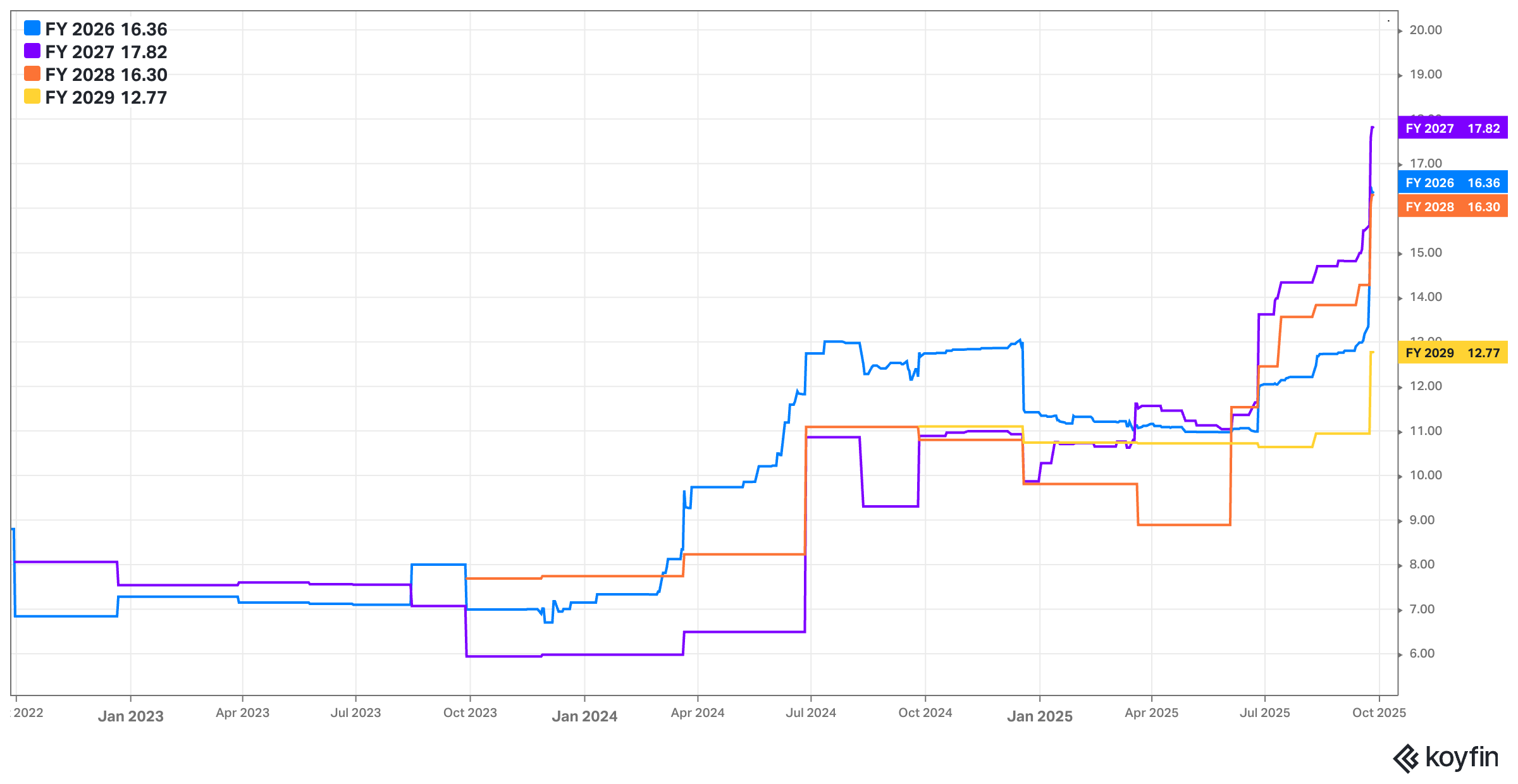 Micron pre-announced Q4 results with updated guidance in excess of its original forecast. The data below is based on those higher new targets, which analyst estimates adjusted for.