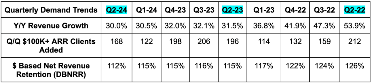 - Revenue growth across all regions ranged from 28% Y/Y to 32% Y/Y.