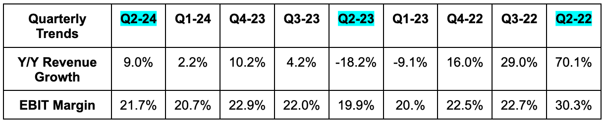 Third quarter guidance was a slight miss on revenue & a slight beat on EBIT. This implies a Q4 guide that is solidly ahead of expectations.