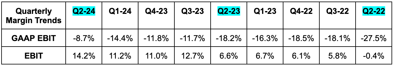- Missed its 43.5% non-GAAP GPM guidance by 480 bps. That is awful.