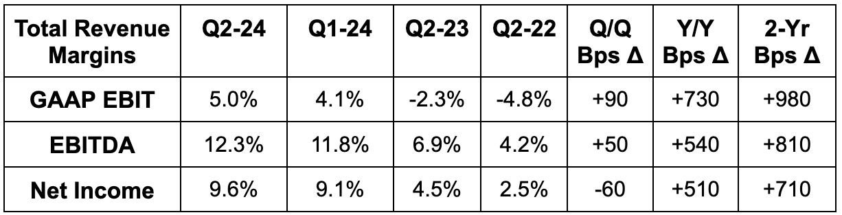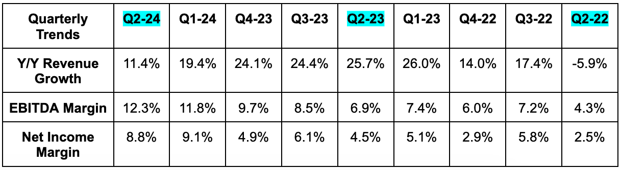 - Beat EBITDA estimate by 10.4% & beat EBITDA guide by 11.6%.