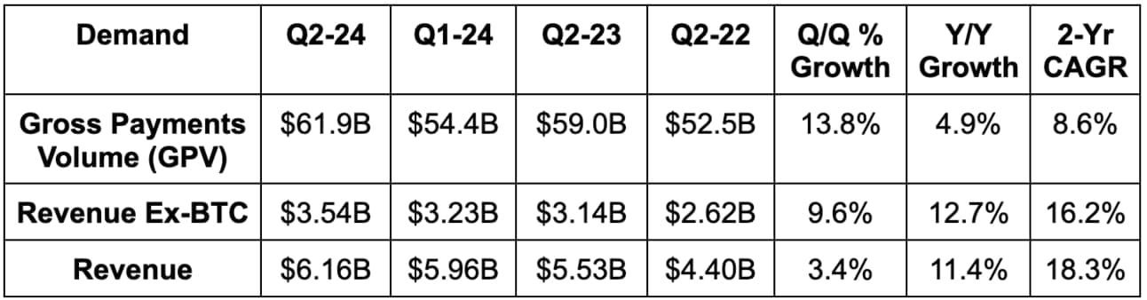 Block trades for 17x 2024 earnings. EPS is expected to grow by 95% this year and by 28% next year. It is currently inflected to positive GAAP EPS as well.