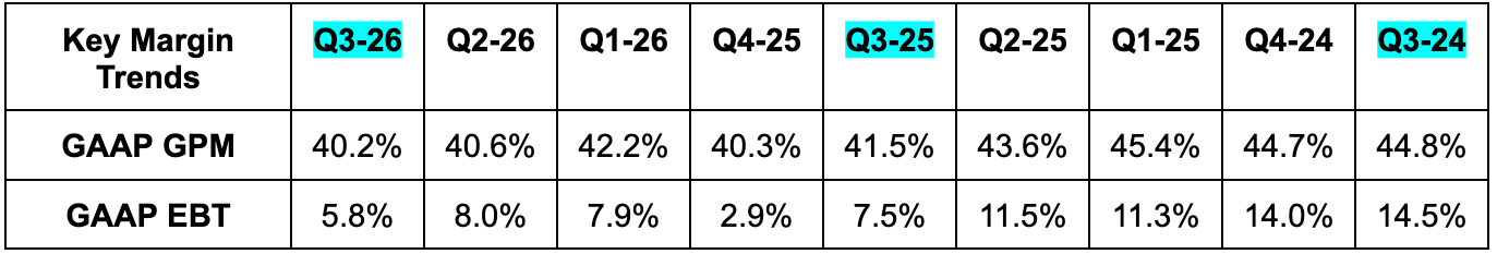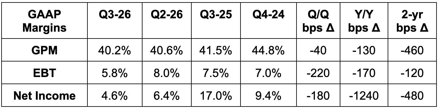 - Tariffs powered the gross margin decline.