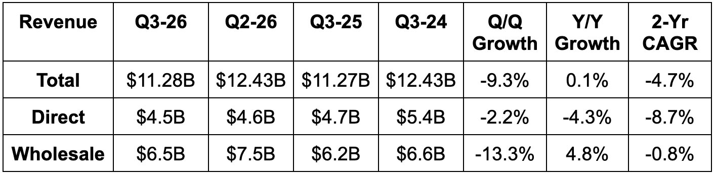 - Wholesale revenue beat estimates by 1.3%.