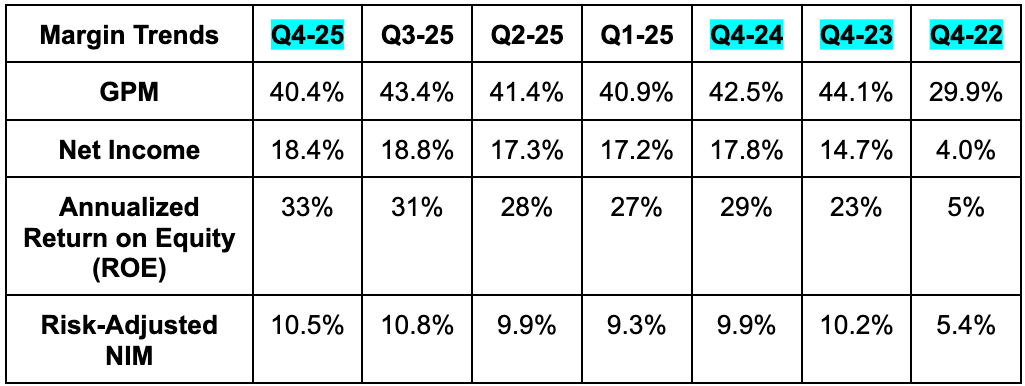 - Beat 10% risk-adjusted NIM estimate by 50 bps.