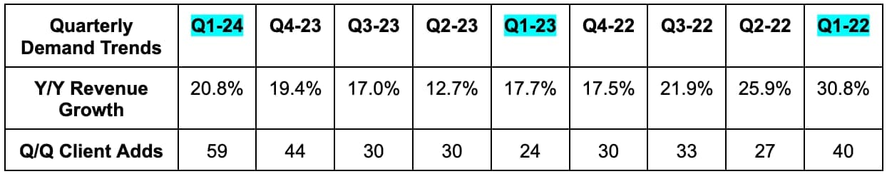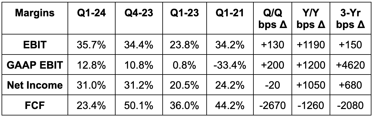The most negative part of this largely positive report is the consistently rapid dilution. A normal pace of share compounding for firms that use stock comp is 2%-3% ex-buybacks. 5%+ is too high. Importantly, last quarter management told us that it re-vamped comp structures to become more “aligned” with shareholders. That should hopefully mean this rate of increase slows considerably going forward. That progress was never going to begin this quickly. If we zoom out a year and growth is still this elevated, I think that would be a concern for bulls. Not my expectation… but pay attention to this trend.