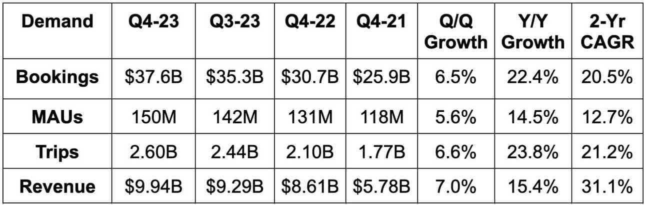 “Customer activity remained strong across the world… We look forward to healthy top line growth in 2024.” – CEO Dara Khosrowshahi