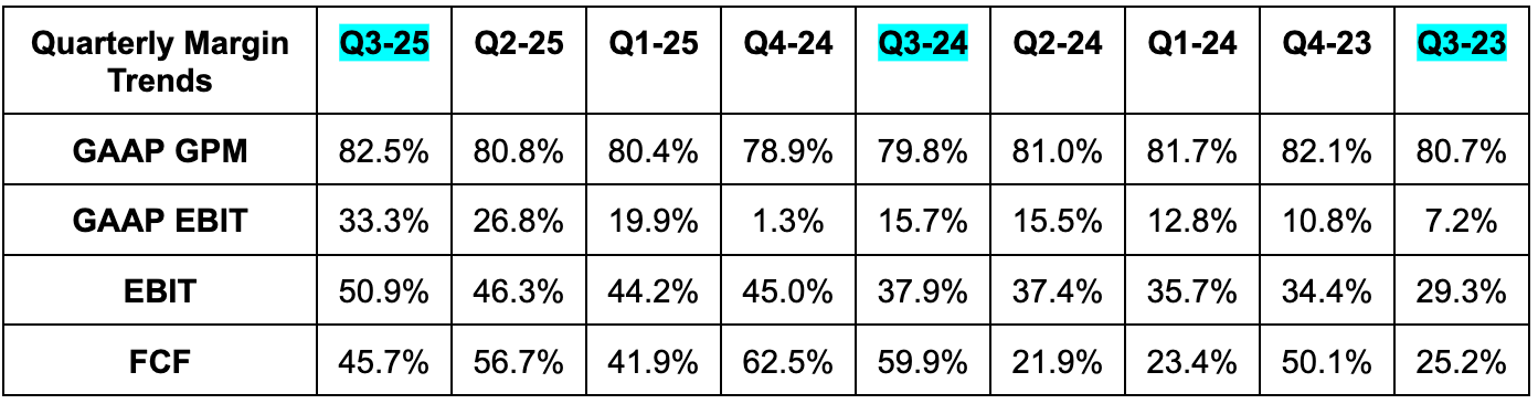 - Raised Q4 EBIT guide by 21%, which beat estimates by 20%.