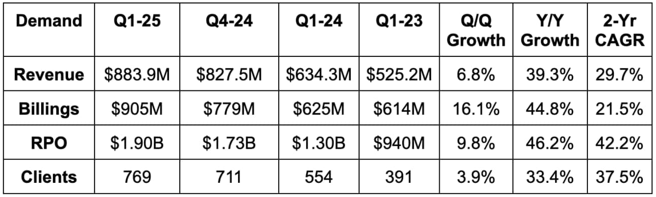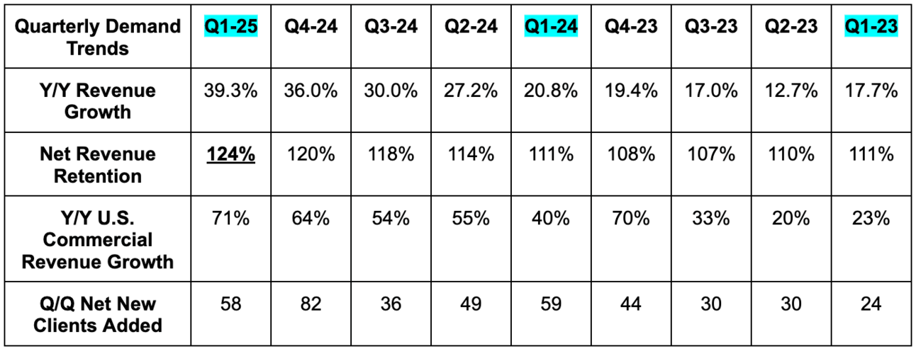 Its existing top 20 customers grew revenue by 26% Y/Y. This helped net revenue retention (NRR) climb to an impressive 124%. Very few companies are delivering this type of Q/Q NRR improvement in this market. Massive billings and RPO beats, as well as rapid TCV and RDV growth, bode extremely well for forward-looking demand.