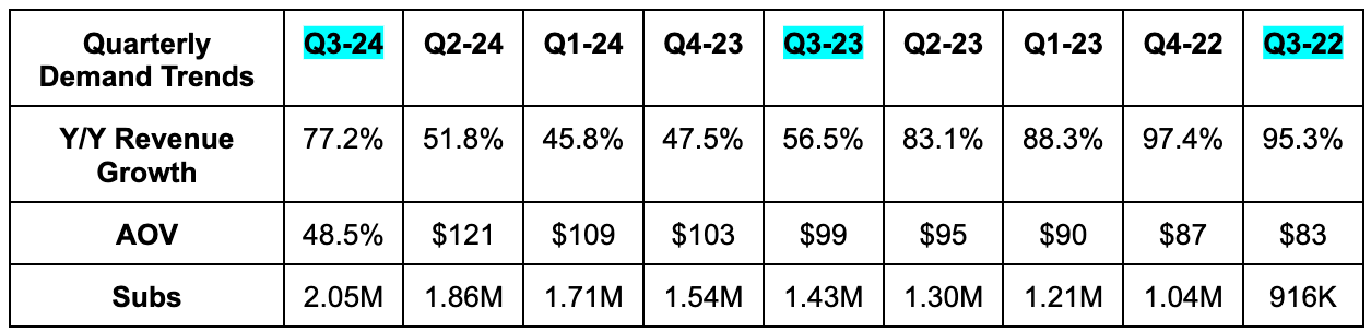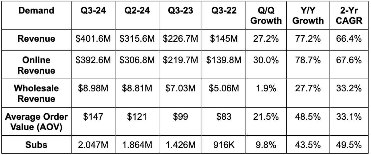 - Average Order Value (AOV) beat estimates by 16%.
