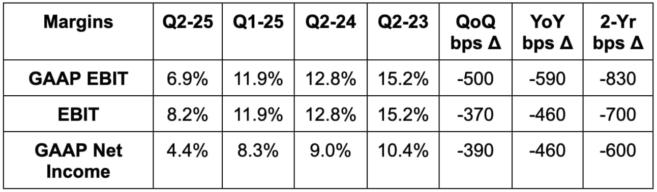 - Missed $826M GAAP EBIT estimates by $225M or 27%.