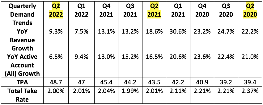 - Take rate stability is a great sign. I was not expecting it to remain at or above 2% for the quarter.