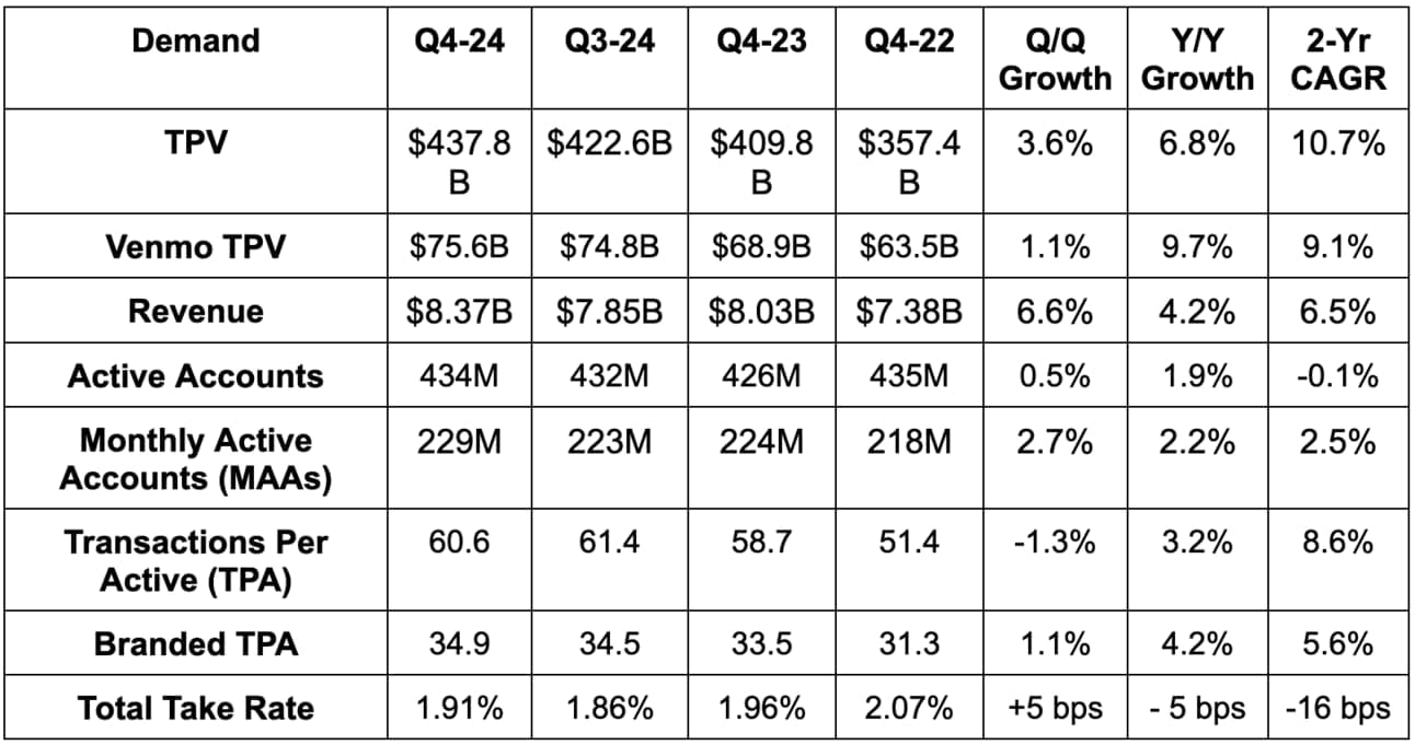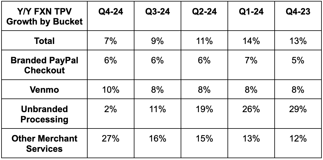 While continued customer balance helped transaction margin dollar growth, that was not the main benefit here. That matters a lot, considering rates are falling and the net interest income growth tailwind is going away. Branded checkout volume, Venmo and profitable Braintree growth were all more structural growth drivers of this all-important metric for the quarter.