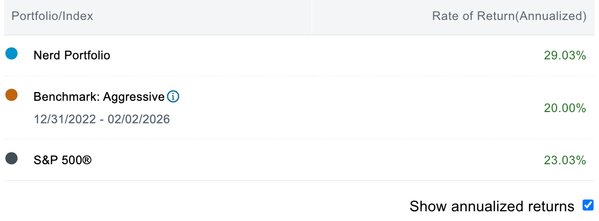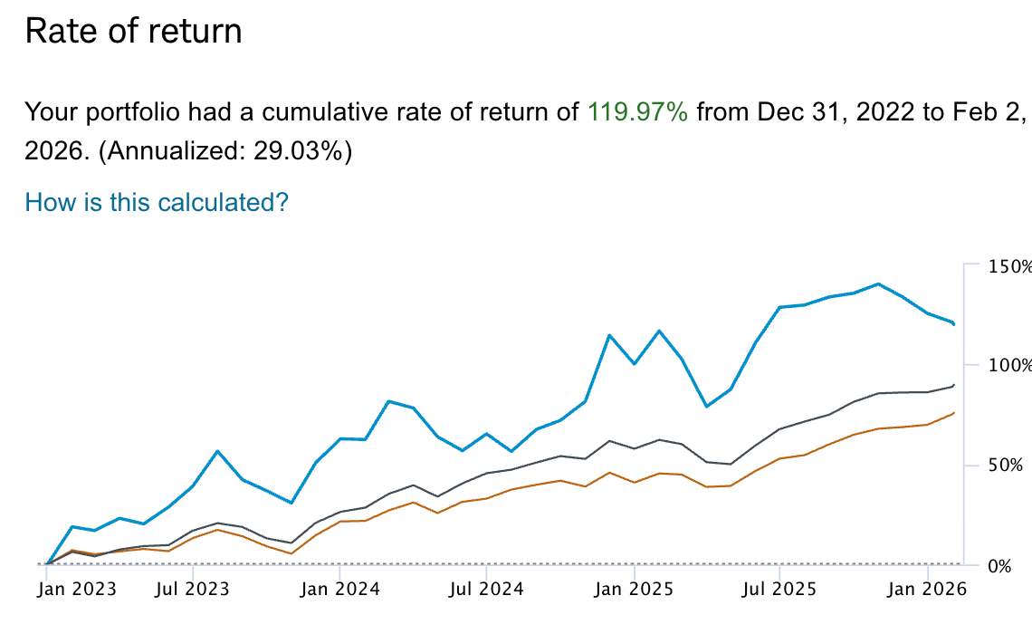 Photo by Rock Staar / Unsplash Portfolio & Performance Updates 3 February 2026 3 min read a. Updated PerformanceOverall: